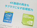 クロック1.9GHzのCore i3-4030Uや容量16GBのDDR3メモリのほか、GPUのGeForce 820M(ビデオメモリ1GB)が搭載されており、4K出力にも対応する。GPU性能の高さも売りとしており、PC内蔵のグラフィックス機能よりパフォーマンスは83%高いという。