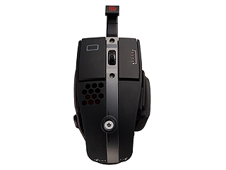 Level 10 M Hybridは、BMWのデザイン部門とのコラボレーションにより制作されたというゲーム向けマウス。先端部分に“角”のようなキャップ付きの突起物を備えており、この部分にケーブルを接続することで有線式マウスとして、ケーブルを外せば2.4GHz無線式マウスとして利用できる。