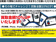 9月25日(水)~10月31日(木)の期間中、買取り査定時に店頭で出題される「Apple30年の歴史クイズ」に正解すると、買取り金額が10%増額されるというキャンペーン。増額対象製品はMac本体で、iPhoneやiPad、その他のApple製品は対象外。