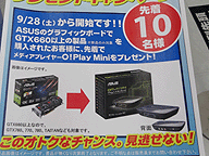 プレゼント用のメディアプレイヤーはASUS O!Play Miniで、新品のビデオカードを購入した人が対象。