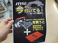 「R9 290X Twin Frozr 4S OC」の購入者にはマウス、「R9 280 GAMING 3G」または「R9 290 Twin Frozr 4S OC」の購入者にはマウスパッドをプレゼント中。