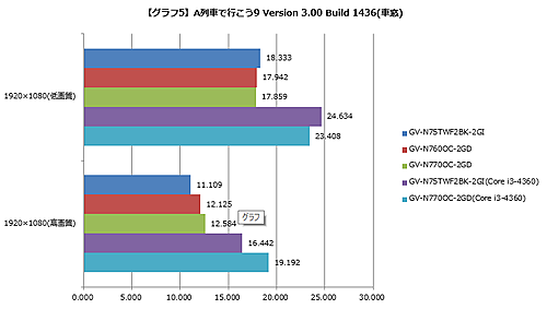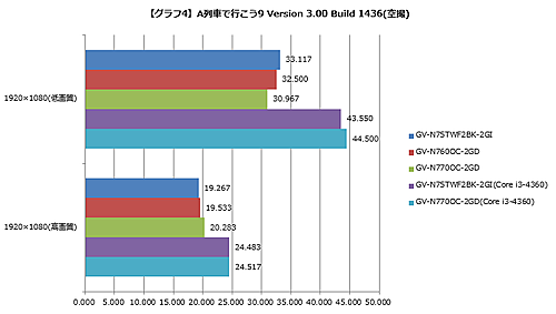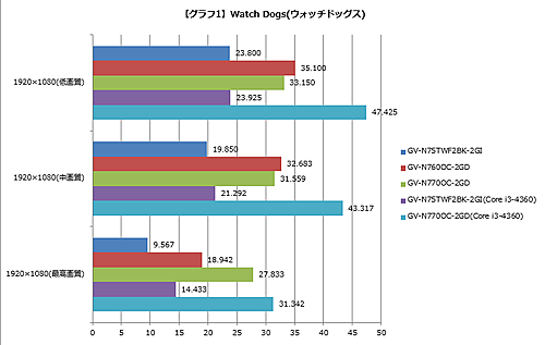 とはいえ、最高画質で30fpsを狙う場合は、GeForce GTX 770あたりが必要となる。それでも31fps程度なのでギリギリだ。今回のGV-N770OC-2GDのように、OCモデルでなければ、30fpsを割り込むところだっただろう。