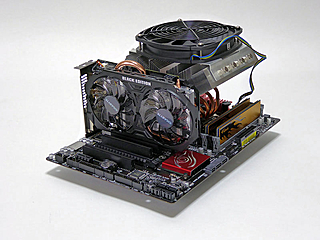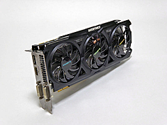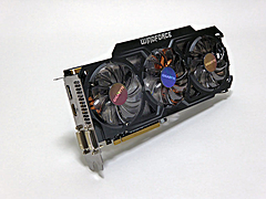 ハイエンドGPUの下位に位置するGeForce GTX 770を搭載。さらに上にはGTX 780や780 TiといったGPUもあるが、かなり高価。GTX 770の本製品なら4万円前後と、今回のコンセプトのようにCPUをケチってGPUにつぎ込むとなると、お買い得度が出る上限ラインだろうか。搭載クーラーは冷却力が強化された3連タイプのWINDFORCE 450Wで、GPU性能に比べ動作音は静か。GPUの動作クロックは1,137MHz(ブースト時1,189MHz)。
