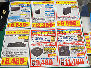 11日(日)までの期間中は、メモリやHDD、SSD、マザーボード、ビデオカードなどなど、様々なPCパーツ、周辺機器を数量限定で販売予定。
