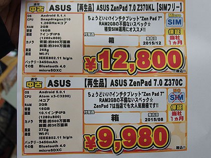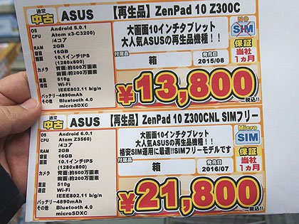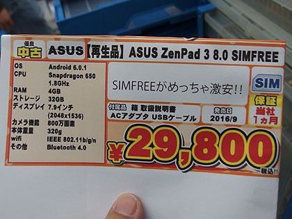 ZenPad 3 8.0のように発売時に品薄となっていた人気モデルもあるようなので、気になった方はお店でチェックしてみてください(以下の写真は全てイオシス アキバ路地裏店で撮影)。
