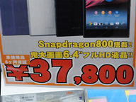 先月末に税込39,800円になったLTE対応のXperia Z Ultra(au SOL24)の未使用品ですが、さらに値下がりしていました。23日時点の店頭価格は税込37,800円。