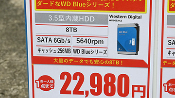 WD Blueの8TB HDDが22,980円で特売されるも、HDD全体は高値の状態が継続 [12月前半のHDD価格]
