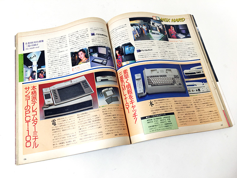 余談ですが、本機の型番がML-TS2ということで「ML-TS1はあるの?」という疑問が出るかと思いますが、もちろんML-TS1も存在しました。実機は、1986年の10月に東京・晴海で開催された「エレクトロニクスショー’86」にて展示されています。ただし一般販売はされなかったほか、テレコムステーションとしての使用が中心となるためにMSXのロゴマークすら本体には付いていない、という仕様でした。コンピュータとしての機能はMSX(1)相当だったほか、カラーリングはML-TS2とは違い白を基調としたもので、これであればオフィスに配置されていても自然と溶け込みそうです。
