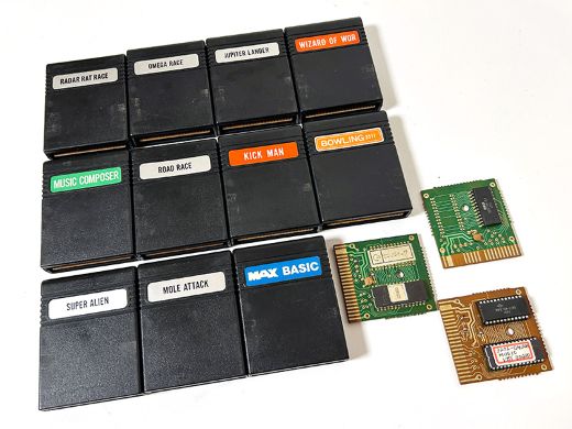 筆者所有のソフトは、カートリッジとしてMAX BASIC/OMEGA RACE/JUPITER LANDER/SUPER ALIEN/RADAR RAT RACE/ROAD RACE/MOLE ATTACK/MUSIC COMPOSER/WIZARD OF WOR/KICK MAN/BOWLING(以上、カートリッジに貼られた表記より)があるほか、なぜかケースに入らずむき出しの状態でミニベーシック/MUSIC KEY BOARD/カー・チェイス/SOUND・M/不明基板の4つが存在していたので、すべてを動作させてみました。結果的に、カー・チェイスがROAD RACEと、SOUND・MはMUSIC COMPOSERと同一で、不明基板はクラウンズということも判明したものの、クラウンズはゲームパドル専用タイトルなので遊ぶことができず……。