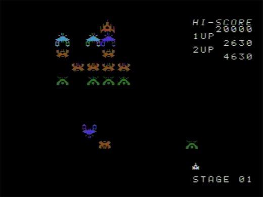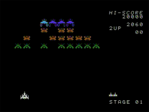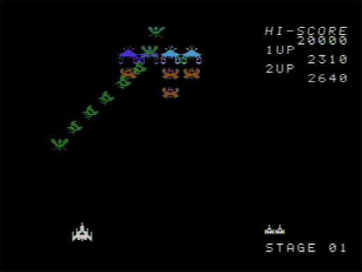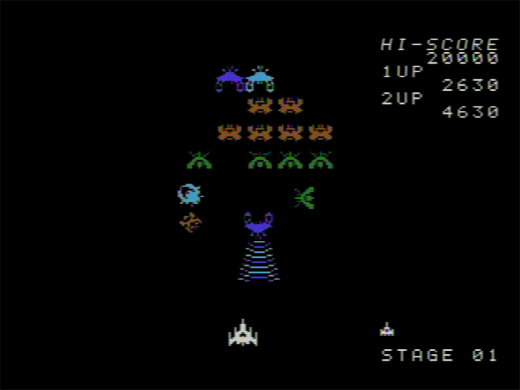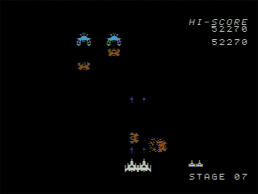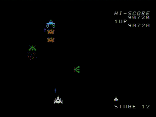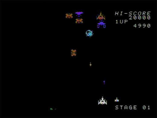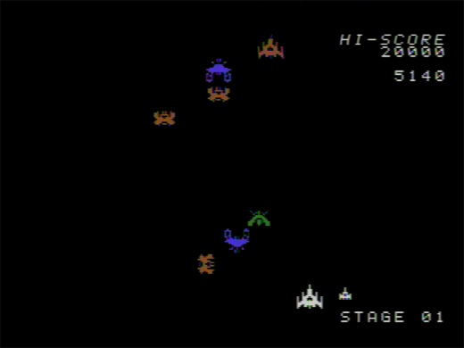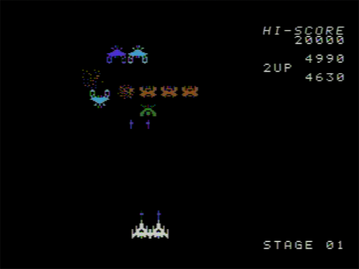 1981年に、アーケードゲームとしてデビューした『ギャラガ』は、前作にあたる『ギャラクシアン』の続編としてゲームセンターで大人気を博すこととなります。しかし、『ギャラクシアン』はパソコン雑誌などに勝手移植のプログラムリストが掲載されることはあっても、『ギャラガ』を勝手移植した作品はほとんど見かけることはありませんでした。
