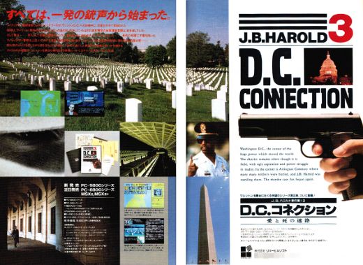 当時の懐かしい広告とゲーム画面で、国産PCの歴史とノスタルジーに浸れる連載コーナー。今回取り上げたのは、リバーヒルソフトが1989年に発売したJ.B.ハロルドが活躍するシリーズの第3作目となる『D.C.コネクション』です。