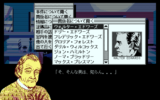 他にも、地元警察の警察官ロン・クレーマーには証拠品の鑑定などを頼むことができたり、タクシー運転手のネルソン・メルビルには事件関係者の尾行を頼んで行動を調査してもらうなど、移動しての聞き込み以外の要素も用意されています。滞在中のホテルから各所に電話をかけての聞き込み、なども可能になっていました。