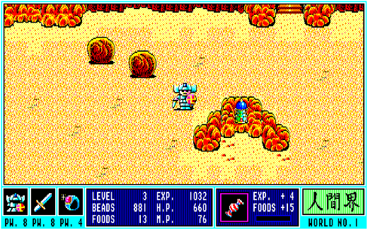 主人公の動きが比較的遅めなので、アクションゲームがそれほど得意ではないという人でも楽しめるだけでなく、しっかりと登場人物たちに会って話を聞けば行き詰まることはほぼない親切設計のため、RPG初心者でも安心して楽しめる作品に仕上がっていました。逆に、アクションRPGに慣れた人にとっては速度面で少々まどろっこしさを感じるかもしれませんが、そんなときは8MHzでプレイ出来る環境を構築することで、その不満を解決できるかと思います。