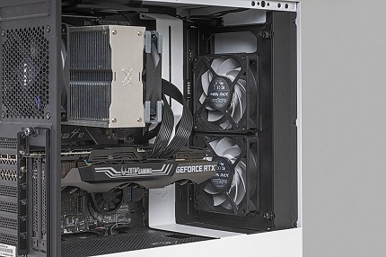 前面にファンを設置して吸気を強化することが効果的なのは前ページの結果から明らかだ。となれば、ここでは予算は必要だが、前面に2基のファンを追加するという、王道的な冷却強化手段を試したい。