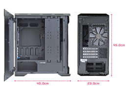 小型とは言い難いサイズだが、それだけに内部は広く、組み立てやすさやパーツの選択肢の多さもまたATX並みだ。水冷クーラーや大型ビデオカードを組み込んだ強力なPCを作りたい。