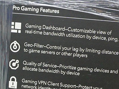 オンラインゲーム向けに設計されたという英NetDumaのルーター用OS「DumaOS」が搭載。遅延の原因となる遠隔地のサーバーやプレイヤーを除外するという「ジオフィルター」、ゲームでの通信の優先度を上げ、遅延を最小限に抑えるという「アンチバッファブロート」などのゲーム向け機能が実現されている。