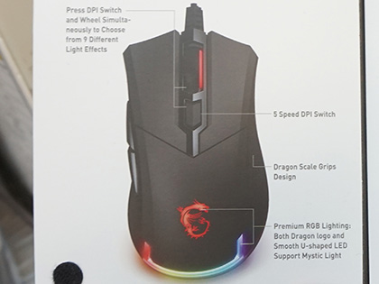 搭載センサーはPixart PMW330で、センサー解像度を400~7,200DPIの範囲内で100DPIずつ調整が可能。また、マウスホイールや本体下部にRGB対応のLEDを搭載しており、同社のライティング制御ソフトで発光カラーを変更できる。