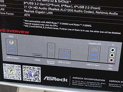 M.2ソケットは2基で、うち一方はPCIe Gen4 x4接続の「Hyper M.2ソケット」が採用されている。搭載するインターフェイスはDisplayPort/HDMI/VGA出力、USB 3.2 Gen2×2(1基はType-C)、USB 3.2 Gen1×4など。