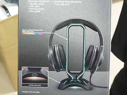 RGB対応のLEDを搭載したヘッドセットスタンド。店頭価格は税込3,480円。