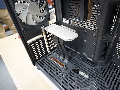 リンクスによる仕様は、対応マザーがE-ATX、ATX、microATX、Mini-ITX、拡張カードスロットが垂直3基、ロープロファイル7基、ケースファンがリア120mm×1、ボトム120mm×2、対応ラジエータサイズがサイド280mm、トップ360mm、リア120mm、拡張カードスペースが長さ375mmまで、厚さ75mmまで、対応電源がATX規格(235mmまで)など。HYTEの仕様では、搭載可能ストレージは3.5インチHDD×2または2.5インチSSD×4。