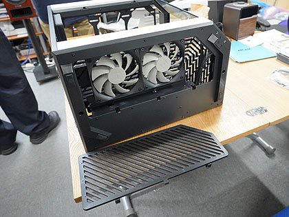 フロントから左サイドに渡って3つの強化ガラスパネルが配置。左コーナーのフレームなどの“障害物”を強化ガラスに置き換えるという手法で、普通のガラスパネル採用ケースより高い視認性を実現している。国内代理店のリンクスインターナショナルは「“全部魅せ”できるPCケース」とアピールしている。