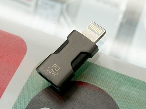 最大30WのUSB PD充電をサポートしているというUSB Type-C to Lightingアダプタ。店頭価格は1,280円。