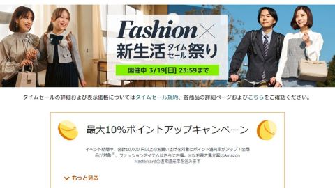 Amazon.co.jpにて、3月19日(日)23:59までの期間限定で「Fashion×新生活タイムセール祭り」が開催。