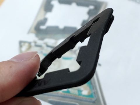 Socket AM5対応CPU(Ryzen 7000シリーズ)のヒートスプレッダの隙間を埋めるためのシリコン製フレーム。店頭価格は1,188円。