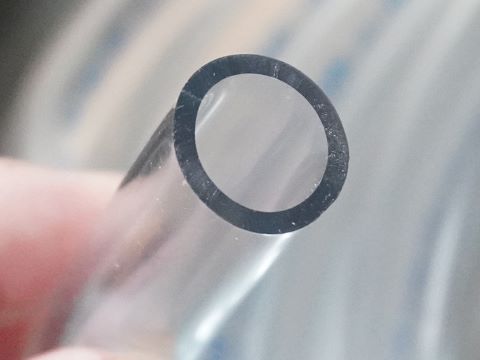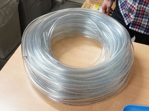 PVC製の透明な水冷用チューブ。内径は10mmで、外径は13mm。1m単価は748円。