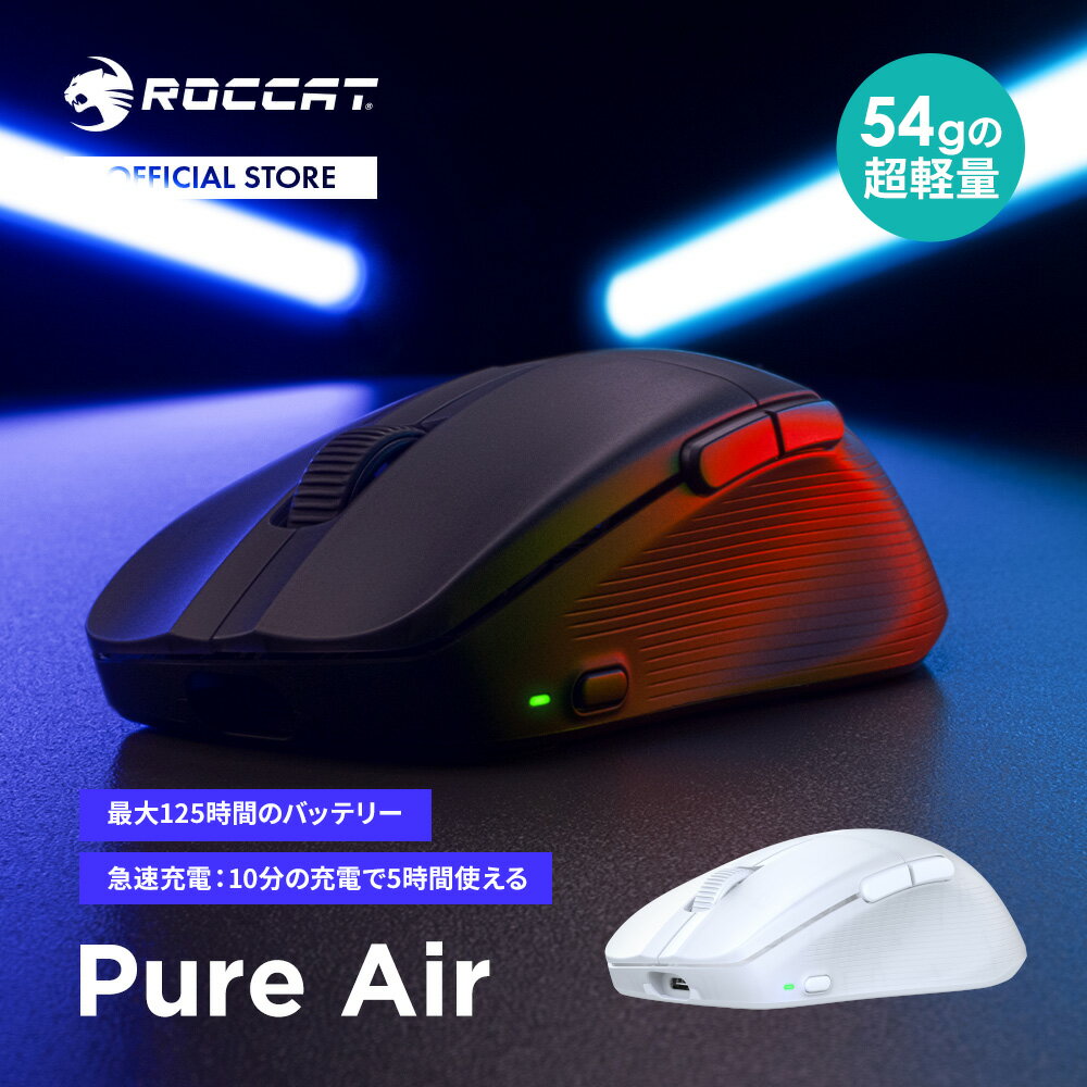 最大125時間のバッテリー動作が可能というROCCATの軽量ゲーミングマウス「PURE AIR」が発売された。本体カラーの違いでブラックとホワイトの2種類が用意されている。