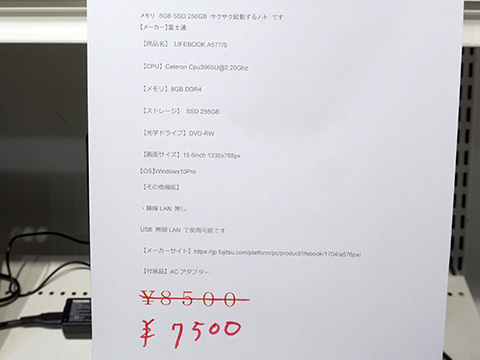 「LIFEBOOK A577/S」の中古品が7,500円!Kaby Lake搭載の15.6インチモデルが大量入荷