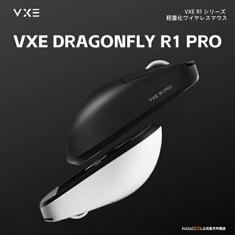 VXE R1 シリーズは軽量化設計を売りとしたワイヤレスマウス。重量はR1 PROが48g、R1 PRO Maxが54gで、Webサイトでは「使い始めたら手放せないマウス」と謳われている。