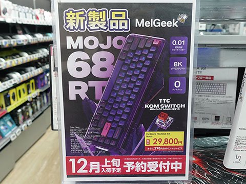 MelGeekのゲーミングキーボードが近日発売される。ソフマップAKIBA パソコン・デジタル館は「MelGeek MOJO68 RT」の実機展示と予約受け付けを開始している。