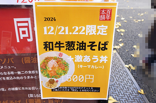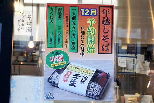 なぜ蕎麦にラー油を入れるのか。秋葉原1号店では年越しそばの予約を受け付けていました。30日までの予約で50円引きになる早割も実施。年越しそばには好みの一品を用意したいところですね。