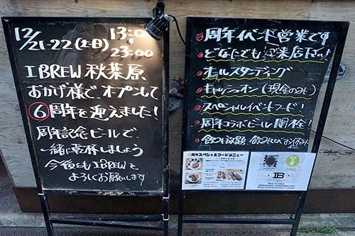 秋葉原で見かけた飲食店関連のホワイトボードや黒板をご紹介。エル・チャテオ・デル・プエンテでは冬のディナーメニューをかわいらしいイラストと共に掲載。IBREW秋葉原では6周年記念のメニュー提供やイベントを開催。レンタルカフェのカフェ・トリオンプではハープ王子門下生発表会が行われていたようです。