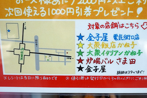「アキバのかね子ではしご酒」、かね子各店をまわるとお得に