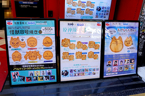 GiGOのたい焼きは「バンドリ!焼き」・「怪獣8号焼き」・「原神焼き」・「あげもち太郎焼き」に