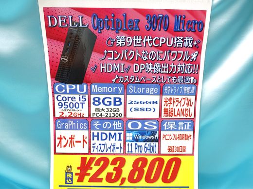 第9世代Core搭載のミニPC「Optiplex 3070 Micro」が23,800円!中古PCセール