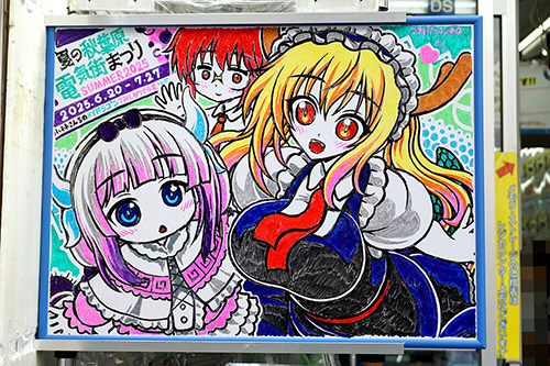 ツクモパソコン本店の店頭ホワイトボードが更新。開催中の夏の秋葉原電気街まつり2025でコラボレーションしている「小林さんちのメイドラゴン」のイラストになっていました。