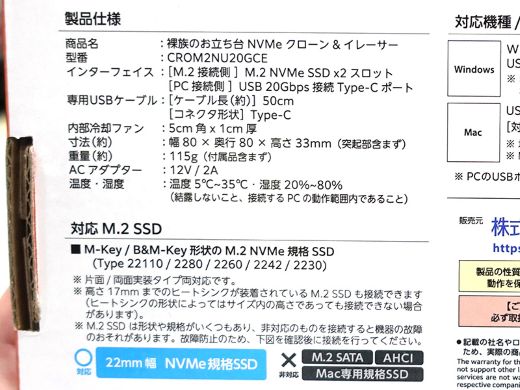 M.2 NVMe SSDのコピーや消去が可能なSSDクレードル「裸族のお立ち台 NVMe クローン&イレーサー(CROM2NU20GCE)」が、センチュリーから発売。