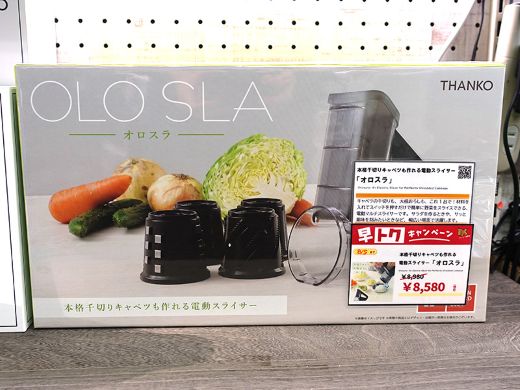 あらゆる野菜をスライスできるという電動スライサー「本格千切りキャベツも作れる電動スライサー『オロスラ』」(YKMC25HWH)がサンコーから発売。