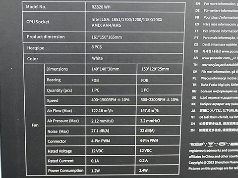 CPSのウルトラハイエンド空冷CPUクーラー「RZ820」に白色モデル、8日発売