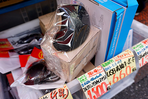 このほかのあきばお~でもセール品が販売されており、あきばお~禄號店には、少し古めのプリンターやスキャナーが多数入荷。あきばお~弐號店では、2.4GHz無線/Bluetooth対応のエルゴノミックマウスが1,500円と安値販売されていました。