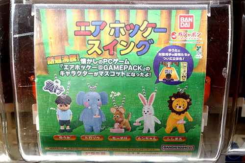 他にも、富士通FMVシリーズのプリインストールゲームに収録されていた「エアホッケー」の立体マスコットフィギュア、平成中期に閉店し今もインターネット上などで愛されているおもちゃ屋「ハローマック」のフィギュア、ダイキャスト製で出た面によって意思決定を行える「運命のコイン3」など、ユニークなカプセルトイも多数見かけました。