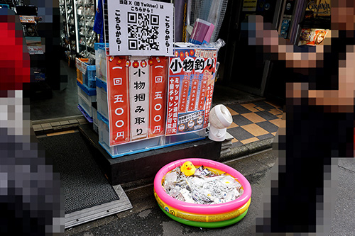 イオシス アキバ路地裏ジャンク店は、小物釣りや小物掴み取りなど縁日風のイベントを開催。小物釣りはスタッフからミッションカードを受け取り、達成数に応じた回数分参加可能となっていました。
