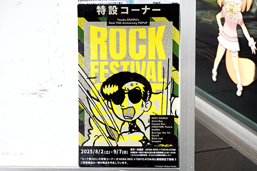 秋葉原UDX2階のTOKYO ATOMに「ロック祭り2025」の特設コーナーが登場。手塚治虫キャラクターのグッズなどが販売されていました。期間は9月7日(日)まで。