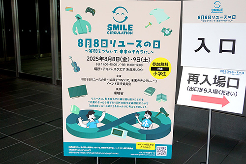 秋葉原UDX2階のアキバ・スクエアでは、小学生対象のリユース体験イベント「8月8日リユースの日 ~笑顔をつないで、未来のチカラに。」が開催されていました。
