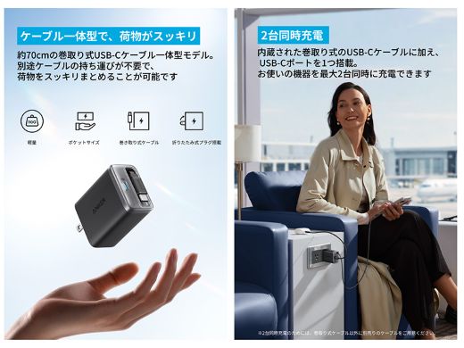 Anker初の巻取り式USB-Cケーブル内蔵の急速充電器が登場、数量限定で20%オフクーポン配布
