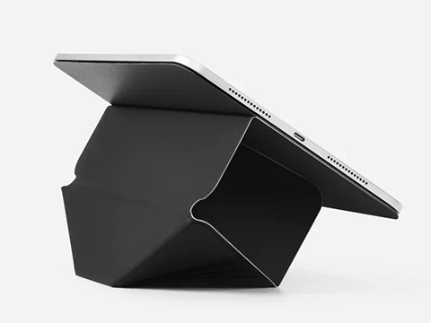 MOFT ダイナミックフォリオは、独自の折り紙にインスパイアされたデザインのiPadスタンド。多段階の高さ調整が可能で、首の疲れを50%(MOFT社内試験結果)以上軽減する。