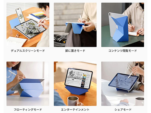 「デュアルスクリーンモード」、「脚に置きモード」など、使い方が20通り以上あるiPadスタンド「MOFT ダイナミックフォリオ」が登場した。